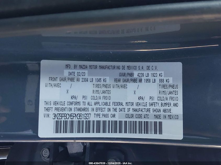 2023 MAZDA 3 2023 року Бензин, 2.5, Полный привод, vin - 3MZBPBCM5PM361937 из США