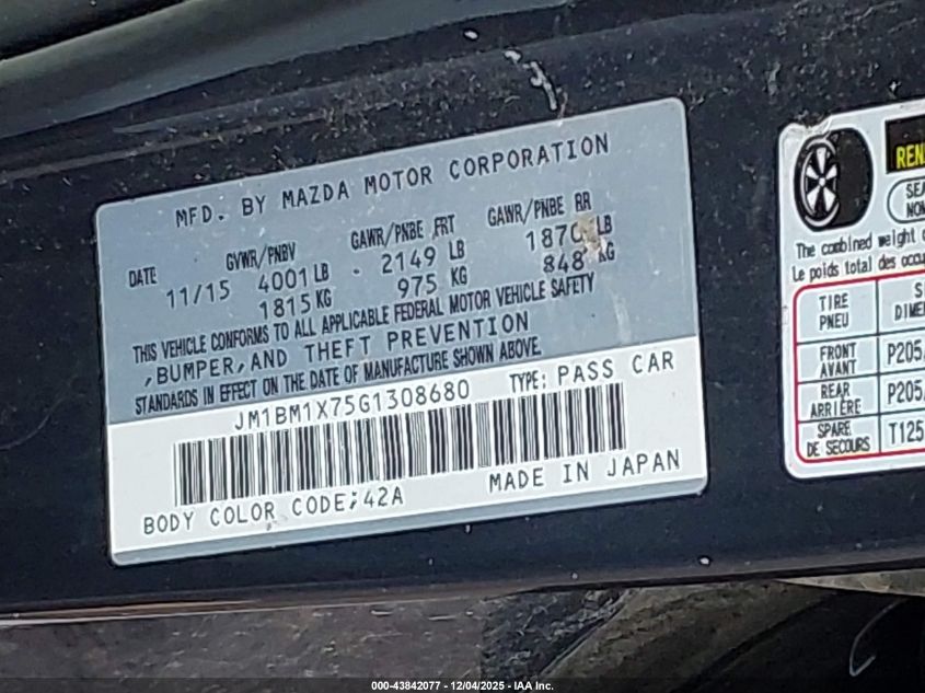 2016 MAZDA 3 2016 року Бензин, 2.0, Передний привод, vin - JM1BM1X75G1308680 из США