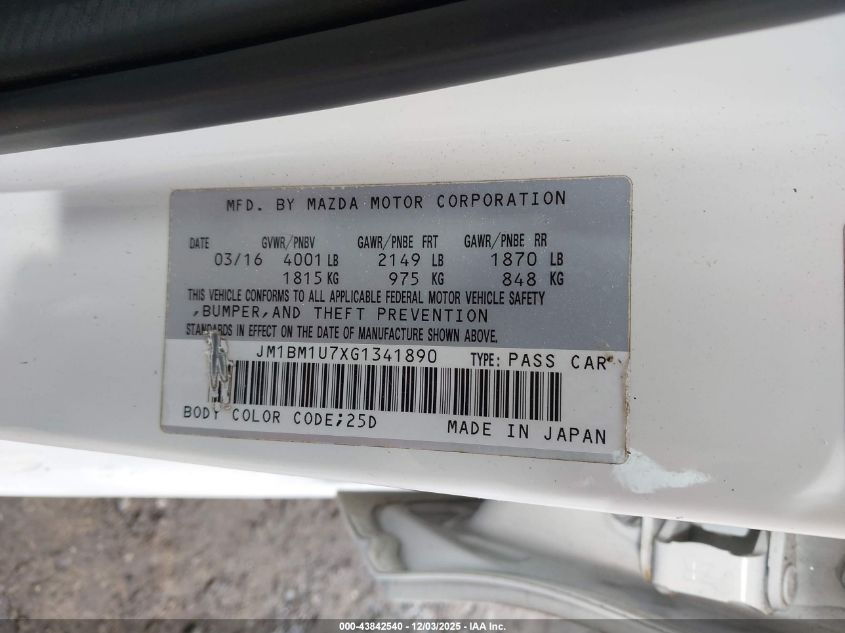 2016 MAZDA 3 2016 року Бензин, 2.0, Передний привод, vin - JM1BM1U7XG1341890 из США