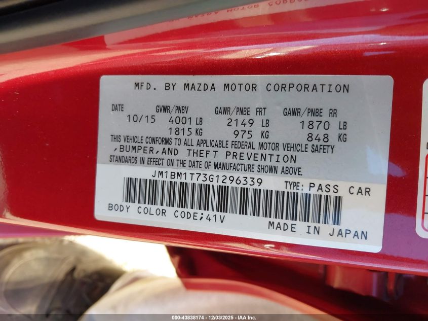 Цвет КрасныйЦилиндры 4Привод Передний приводVIN JM1BM1T73G1296339Состояние СтационарноПовреждения Передняя или задняя AutoRIA