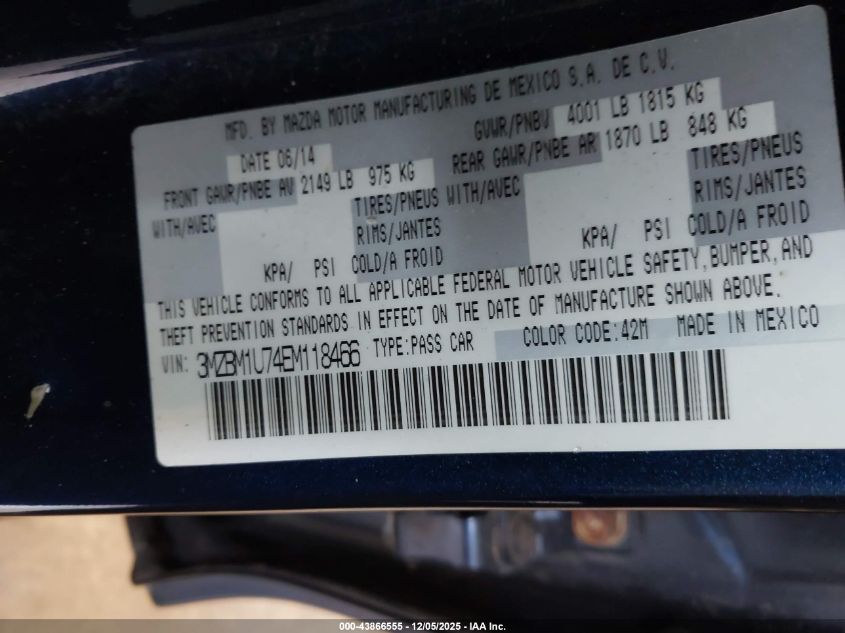 Цвет СинийЦилиндры 4Привод Передний приводVIN 3MZBM1U74EM118466Состояние Заводится и едет (проверено)Повреждения Левая сторона AutoRIA