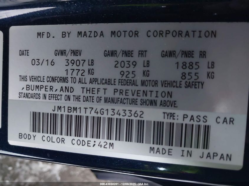 2016 MAZDA 3 2016 року Бензин, 2.0, Передний привод, vin - JM1BM1T74G1343362 из США