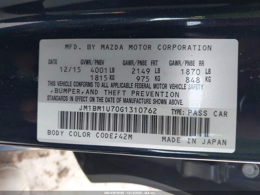2016 MAZDA 3 2016 року Бензин, 2.0, Передний привод, vin - JM1BM1U70G1310762 из США