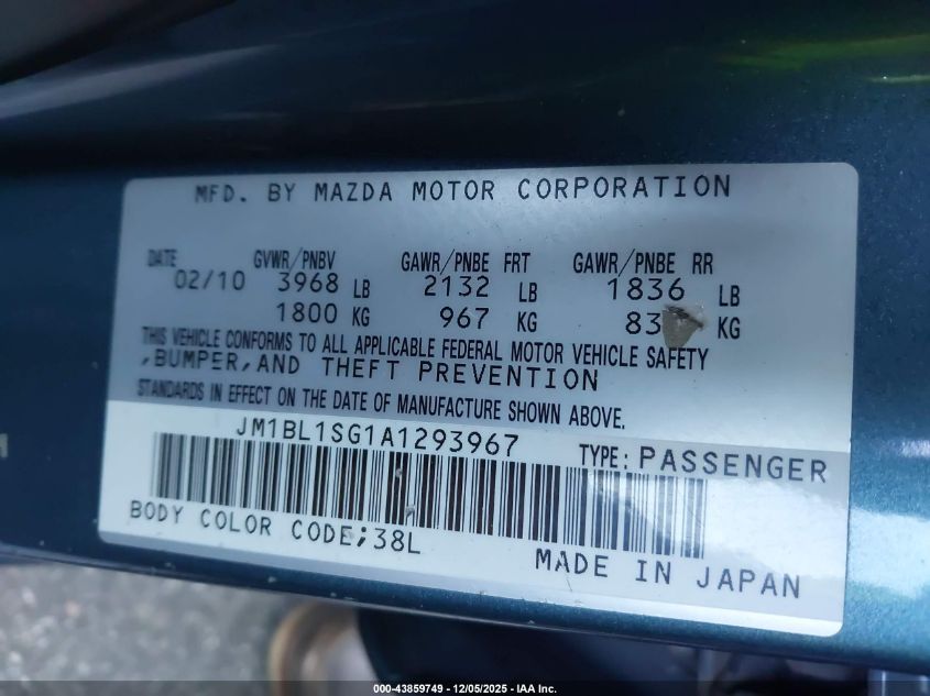 2010 MAZDA 3 2010 року Бензин, 2.0, Передний привод, vin - JM1BL1SG1A1293967 из США