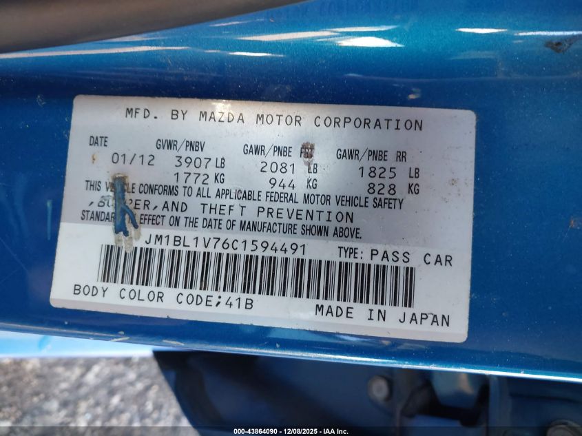 Цвет СинийЦилиндры 4Привод Передний приводVIN JM1BL1V76C1594491Состояние СтационарноПовреждения Передняя или задняя AutoRIA
