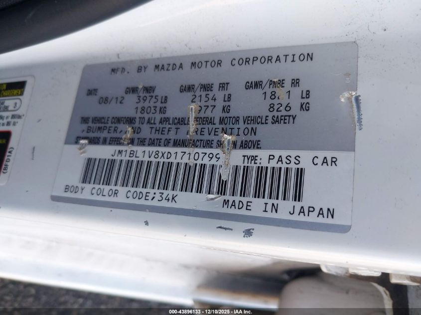 Цвет БелыйЦилиндры 4Привод Передний приводVIN JM1BL1V8XD1710799Состояние Заводится и едет (проверено)Повреждения Передняя или задняя AutoRIA