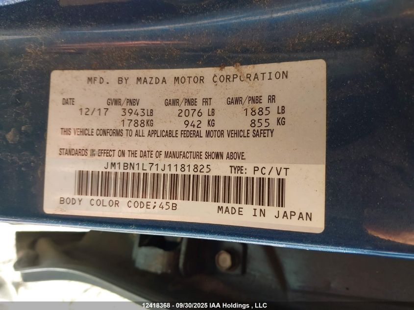 2018 MAZDA 3 2018 року Бензин, , Передний привод, vin - JM1BN1L71J1181825 из США