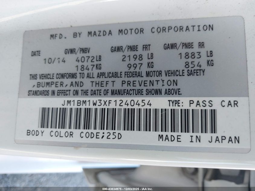 2015 MAZDA 3 2015 року Бензин, 2.5, Передний привод, vin - JM1BM1W3XF1240454 из США