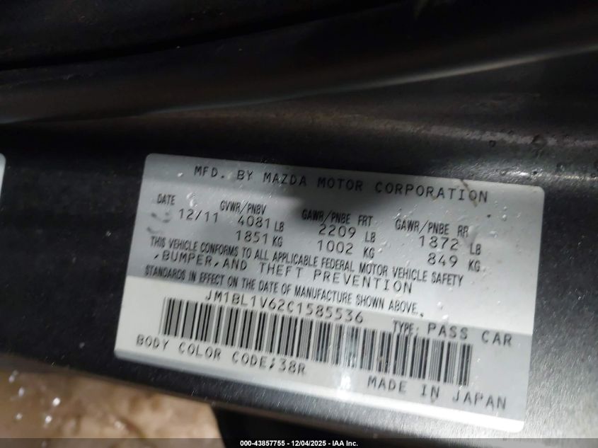 2012 MAZDA 3 2012 року Бензин, 2.5, Передний привод, vin - JM1BL1V62C1585536 из США