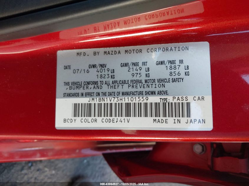 2017 MAZDA 3 2017 року Бензин, 2.0, Передний привод, vin - JM1BN1V73H1101559 из США