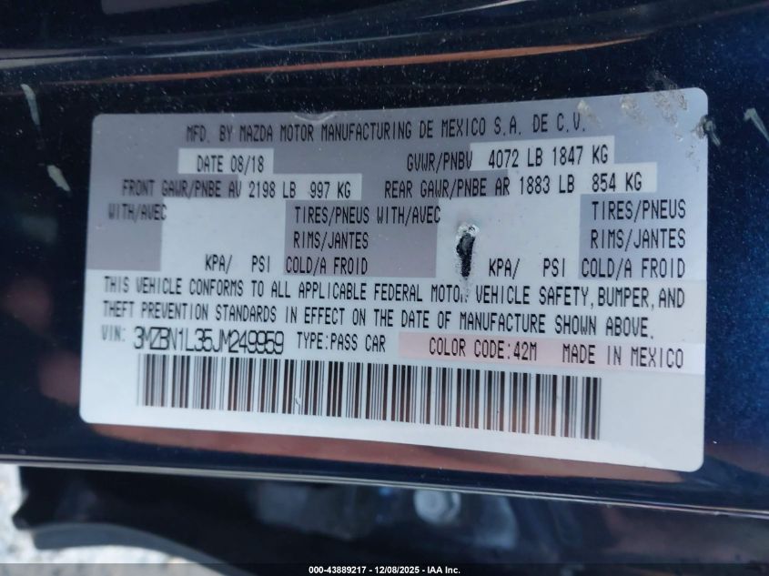 2018 MAZDA 3 2018 року Бензин, 2.5, Передний привод, vin - 3MZBN1L35JM249959 из США