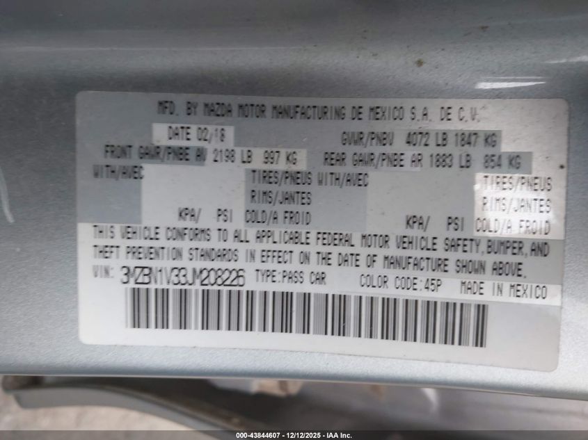2018 MAZDA 3 2018 року Бензин, 2.5, Передний привод, vin - 3MZBN1V33JM208226 из США