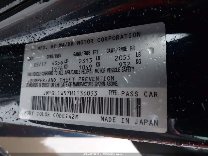 2017 MAZDA 6 2017 року Бензин, 2.5, Передний привод, vin - JM1GL1W57H1136033 из США