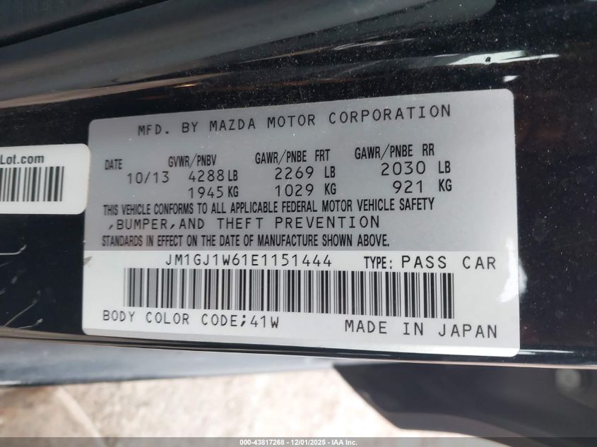 2014 MAZDA 6 2014 року Бензин, 2.5, Передний привод, vin - JM1GJ1W61E1151444 из США