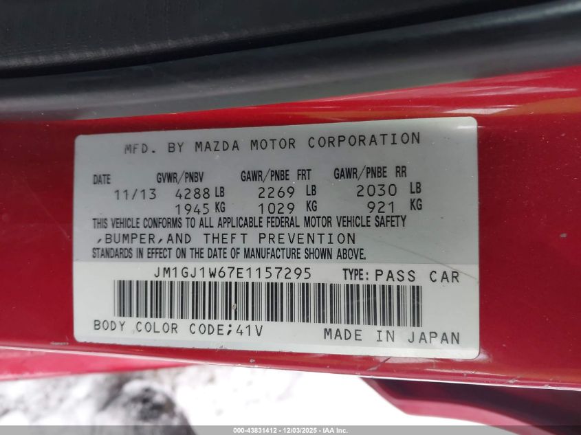 2014 MAZDA 6 2014 року Бензин, 2.5, Передний привод, vin - JM1GJ1W67E1157295 из США