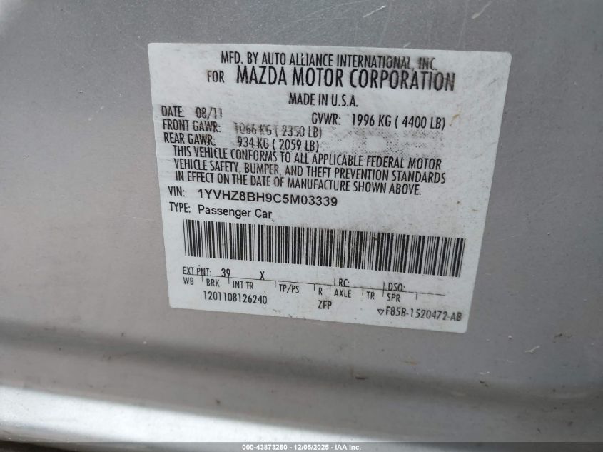 2012 MAZDA 6 2012 року Бензин, 2.5, Передний привод, vin - 1YVHZ8BH9C5M03339 из США