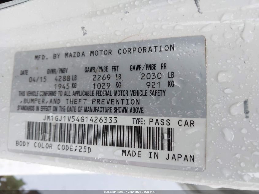 2016 MAZDA 6 2016 року Бензин, 2.5, Передний привод, vin - JM1GJ1V54G1426333 из США