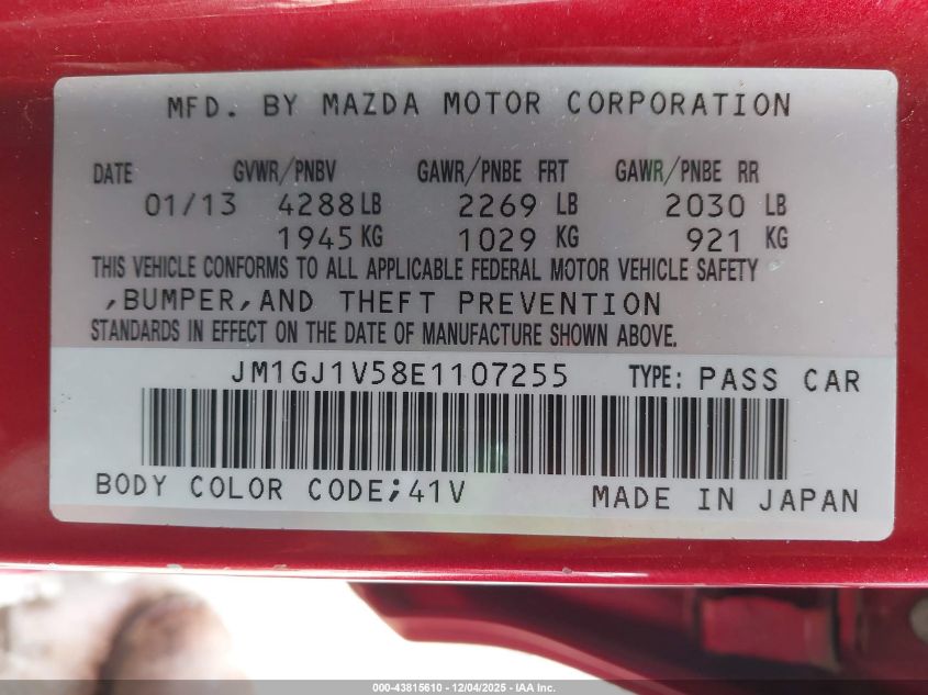 2014 MAZDA 6 2014 року Бензин, 2.5, Передний привод, vin - JM1GJ1V58E1107255 из США