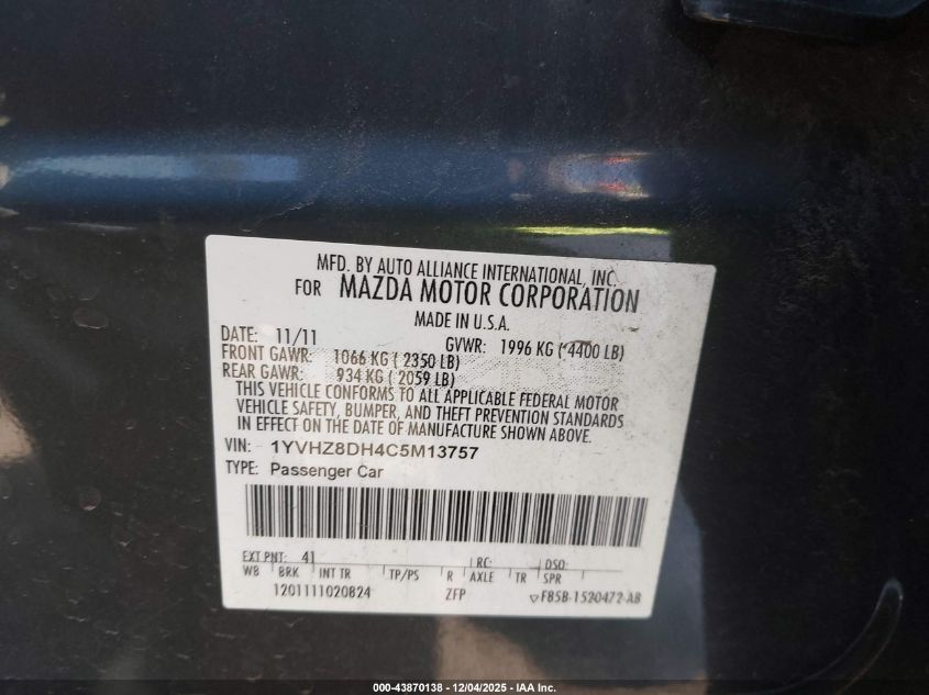 2012 MAZDA 6 2012 року Бензин, 2.5, Передний привод, vin - 1YVHZ8DH4C5M13757 из США