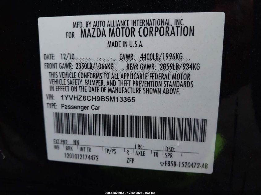 2011 MAZDA 6 2011 року Бензин, 2.5, Передний привод, vin - 1YVHZ8CH9B5M13365 из США
