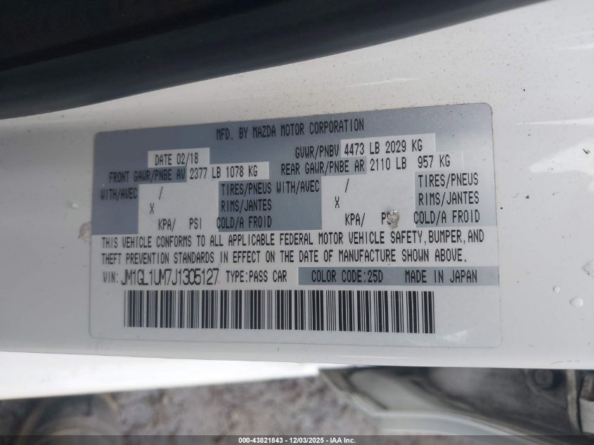 2018 MAZDA 6 2018 року Бензин, 2.5, Передний привод, vin - JM1GL1UM7J1305127 из США