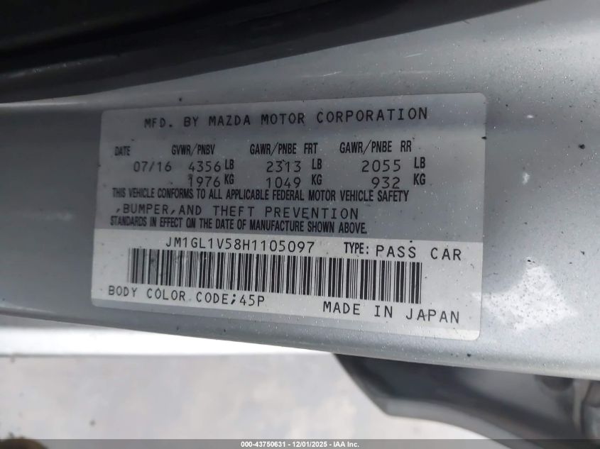 2017 MAZDA 6 2017 року Бензин, 2.5, Передний привод, vin - JM1GL1V58H1105097 из США