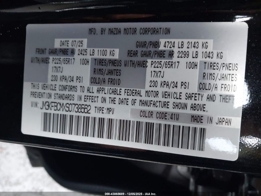 2025 MAZDA CX-5 2025 року Бензин, 2.5, Полный привод, vin - JM3KFBCMXS0738562 из США