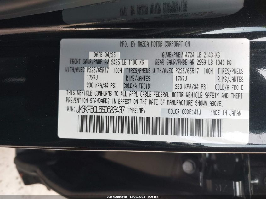 Цвет ЧерныйЦилиндры 4Привод Полный приводVIN JM3KFBCL6S0683437Состояние Заводится и едет (проверено)Повреждения НеизвестноДата аукциона 2025-12-17 AutoRIA
