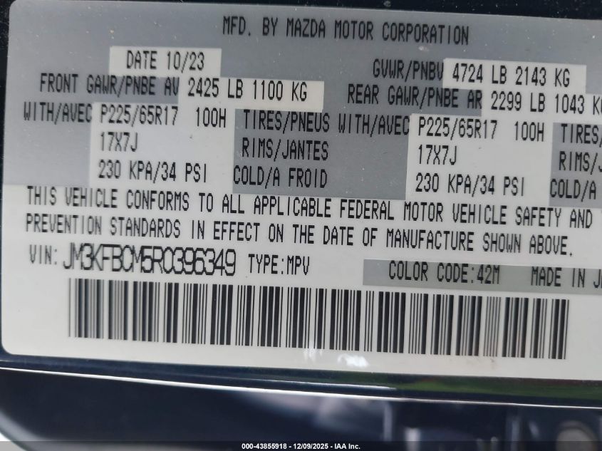 2024 MAZDA CX-5 2024 року Бензин, 2.5, Полный привод, vin - JM3KFBCM5R0396349 из США