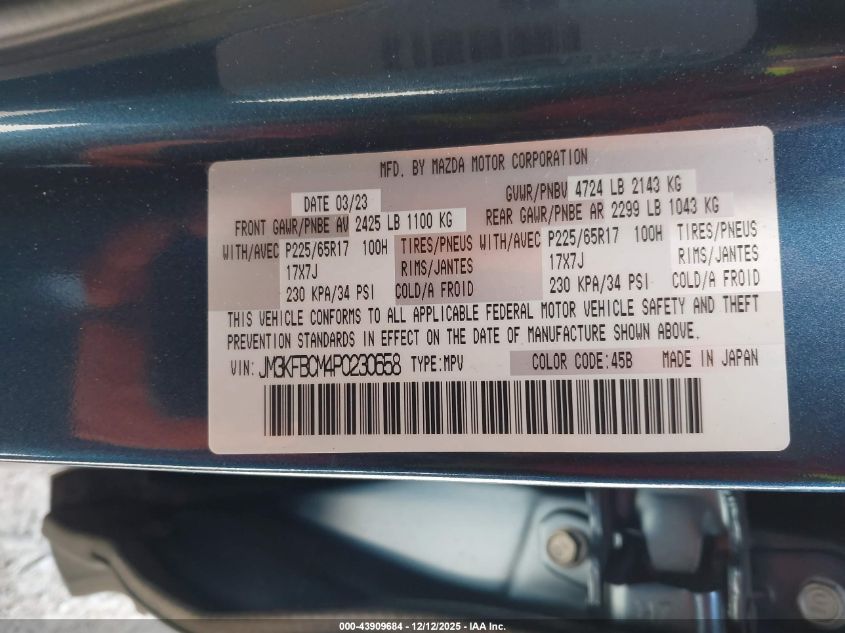 2023 MAZDA CX-5 2023 року Бензин, 2.5, Полный привод, vin - JM3KFBCM4P0230658 из США