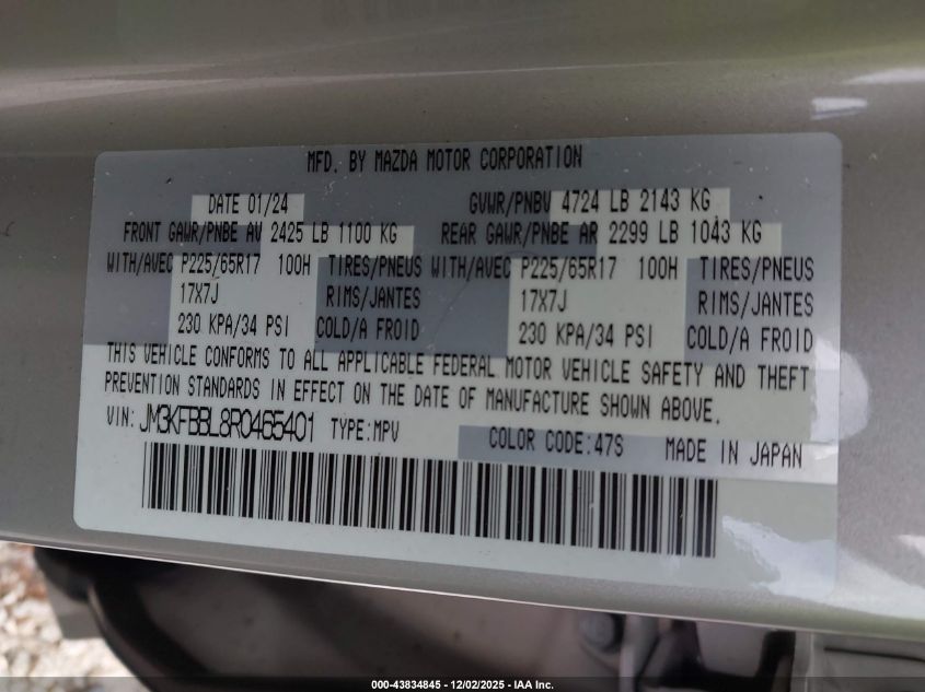 2024 MAZDA CX-5 2024 року Бензин, 2.5, Полный привод, vin - JM3KFBBL8R0465401 из США