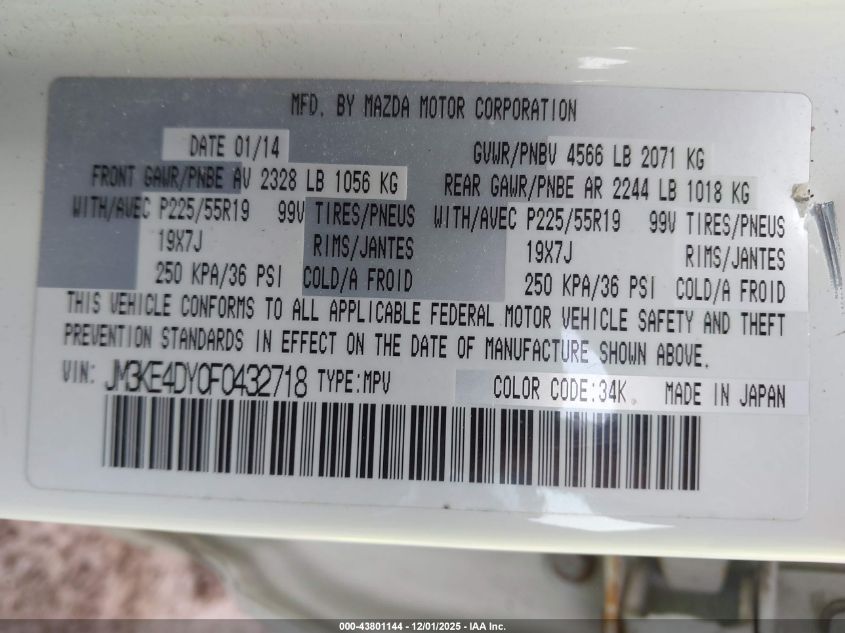 Цвет БелыйЦилиндры 4Привод Полный приводVIN JM3KE4DY0F0432718Состояние Заводится и едет (проверено)Повреждения Передняя или задняя AutoRIA