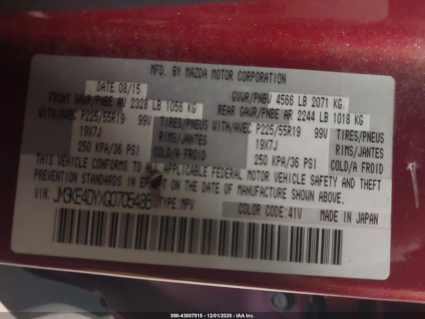 2016 MAZDA CX-5 2016 року Бензин, 2.5, Полный привод, vin - JM3KE4DYXG0705486 из США