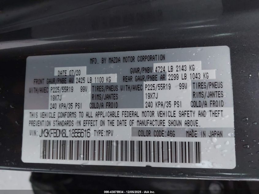 2020 MAZDA CX-5 2020 року Бензин, 2.5, Полный привод, vin - JM3KFBDM8L1855616 из США