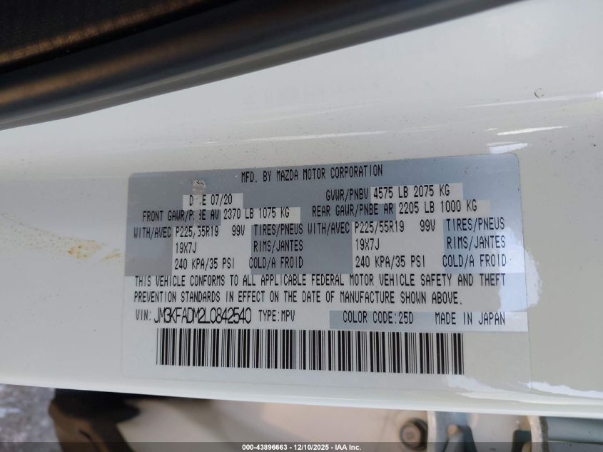 2020 MAZDA CX-5 2020 року Бензин, 2.5, Передний привод, vin - JM3KFADM2L0842540 из США