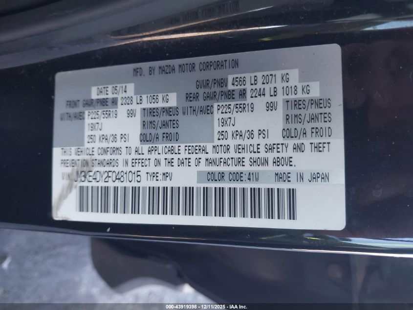 2015 MAZDA CX-5 2015 року Бензин, 2.5, Полный привод, vin - JM3KE4DY2F0481015 из США