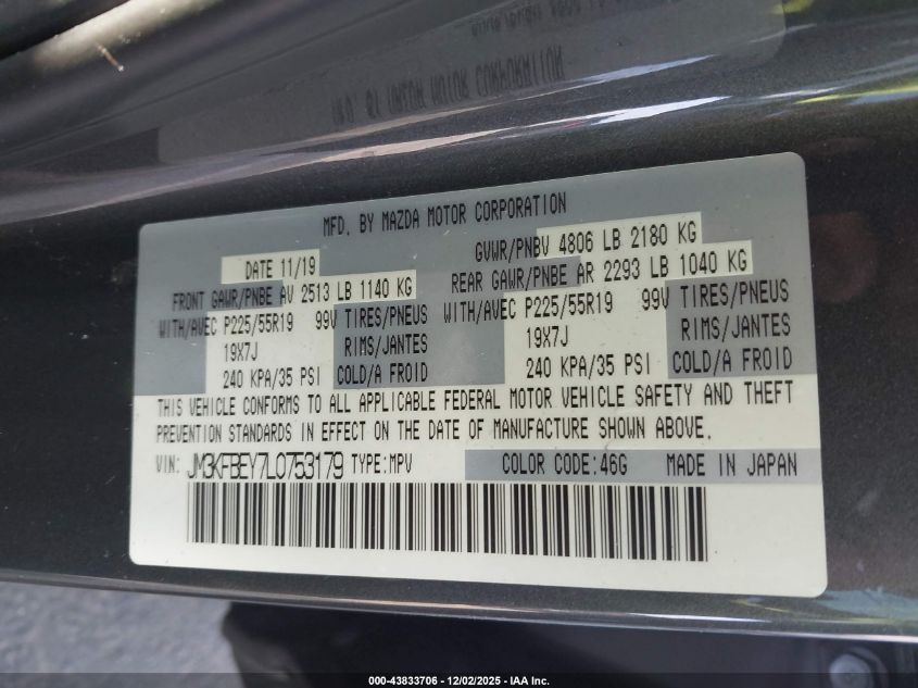 2020 MAZDA CX-5 2020 року Бензин, 2.5, Полный привод, vin - JM3KFBEY7L0753179 из США