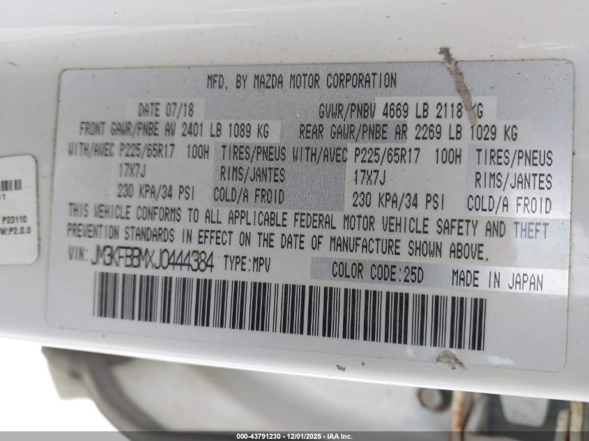 2018 MAZDA CX-5 2018 року Бензин, 2.5, Полный привод, vin - JM3KFBBMXJ0444384 из США