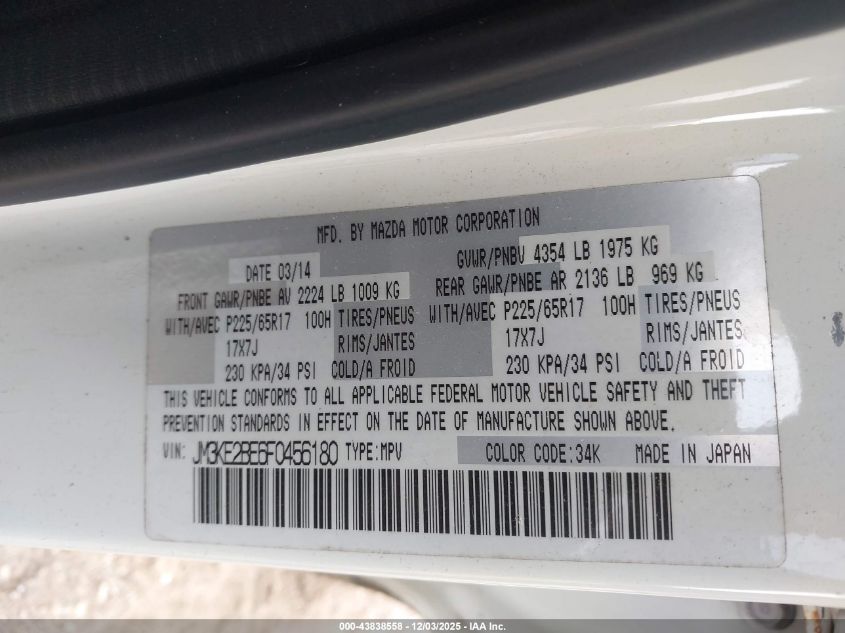 2015 MAZDA CX-5 2015 року Бензин, 2.0, Передний привод, vin - JM3KE2BE6F0456180 из США