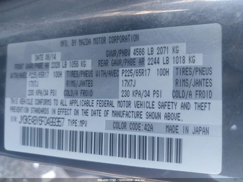 2015 MAZDA CX-5 2015 року Бензин, 2.5, Полный привод, vin - JM3KE4BY6F0499357 из США