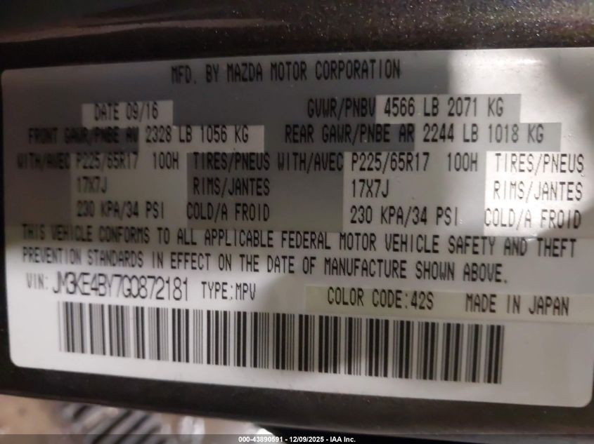 Цвет СерыйЦилиндры 4Привод Полный приводVIN JM3KE4BY7G0872181Состояние СтационарноПовреждения Передняя или задняя AutoRIA
