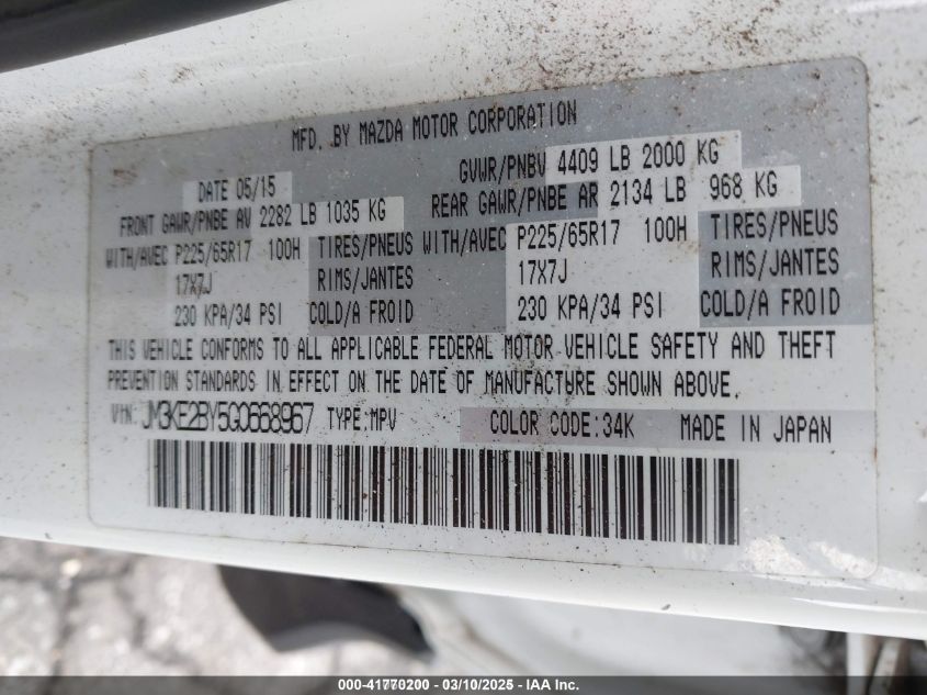 Цвет БелыйЦилиндры 4Привод Передний приводVIN JM3KE2BY5G0668967Состояние НеизвестноПовреждения Передняя и задняя AutoRIA