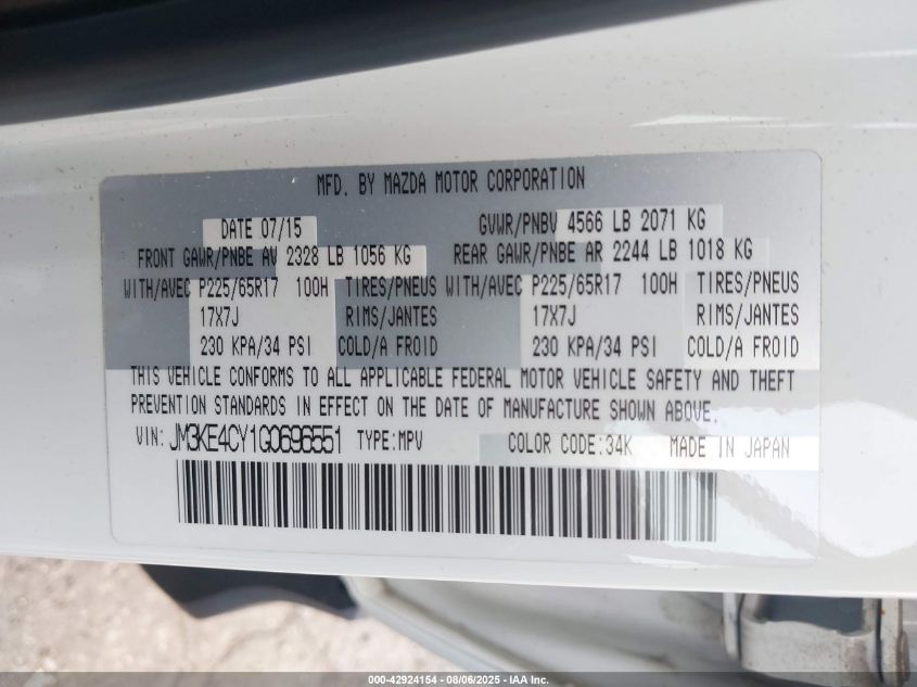 2016 MAZDA CX-5 2016 року Бензин, 2.5, Полный привод, vin - JM3KE4CY1G0696551 из США