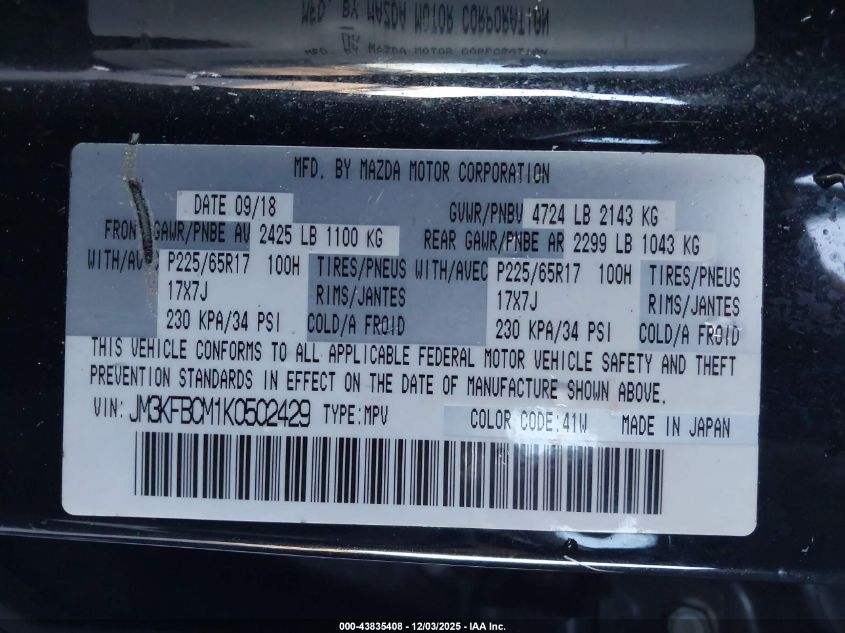 2019 MAZDA CX-5 2019 року Бензин, 2.5, Полный привод, vin - JM3KFBCM1K0502429 из США