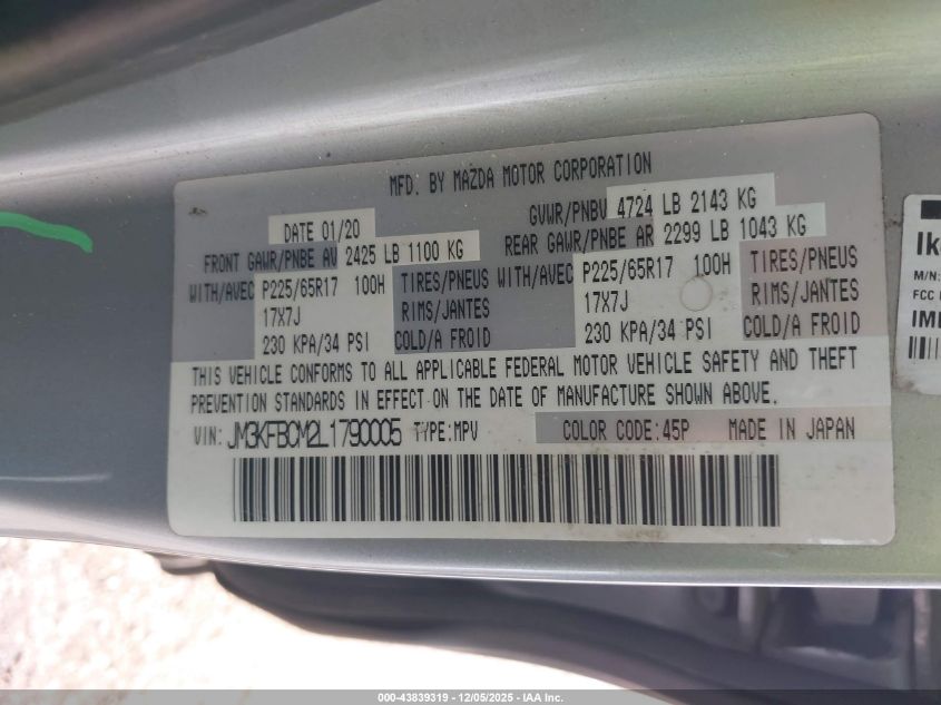 2020 MAZDA CX-5 2020 року Бензин, 2.5, Полный привод, vin - JM3KFBCM2L1790005 из США