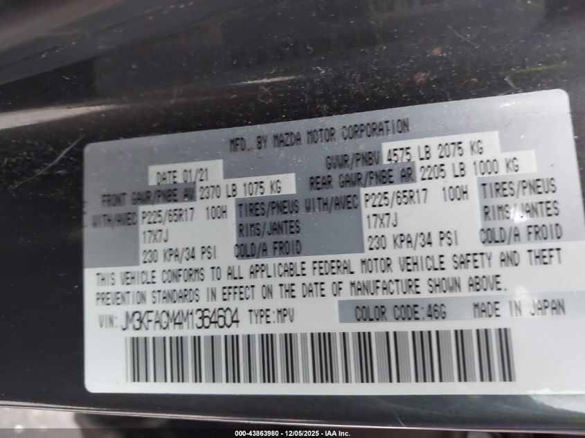 2021 MAZDA CX-5 2021 року Бензин, 2.5, Передний привод, vin - JM3KFACM4M1364604 из США