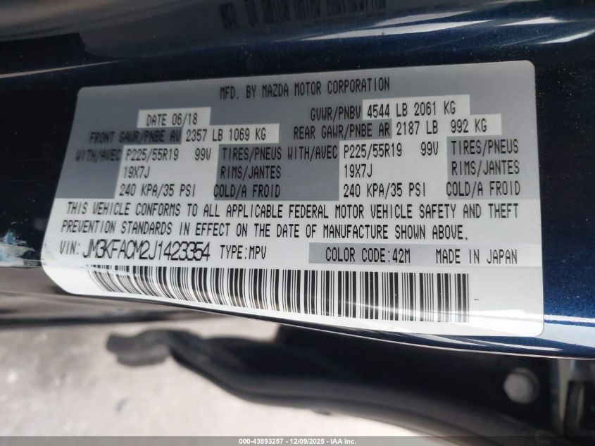 2018 MAZDA CX-5 2018 року Бензин, 2.5, Передний привод, vin - JM3KFACM2J1423354 из США