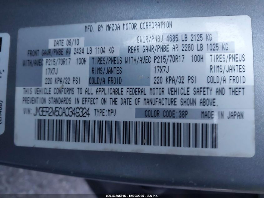 2010 MAZDA CX-7 2010 року Бензин, 2.5, Передний привод, vin - JM3ER2W50A0349324 из США