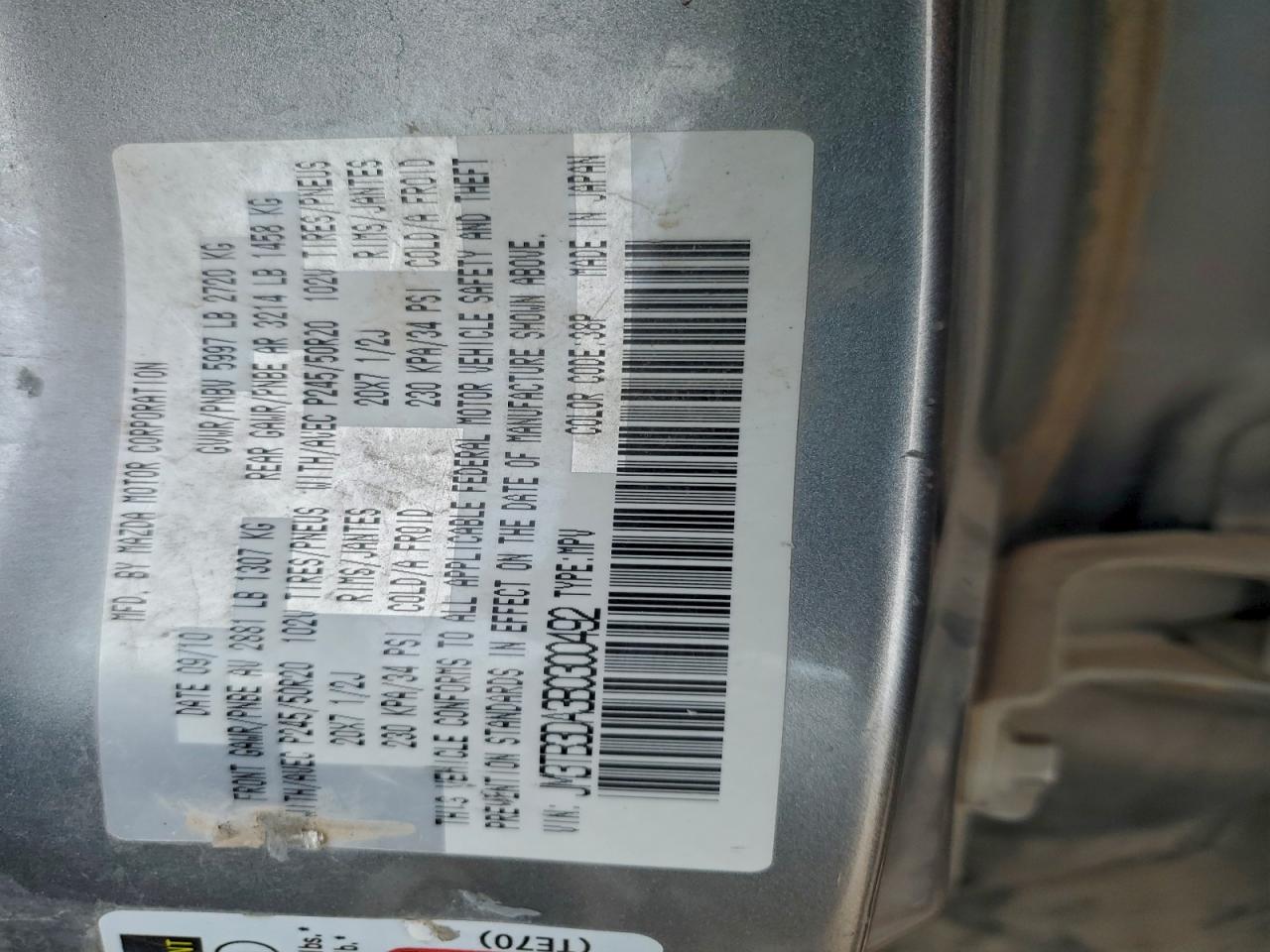 2011 MAZDA CX-9 2011 року Бензин, 3.7, Полный привод, vin - JM3TB3DA3B0300492 из США