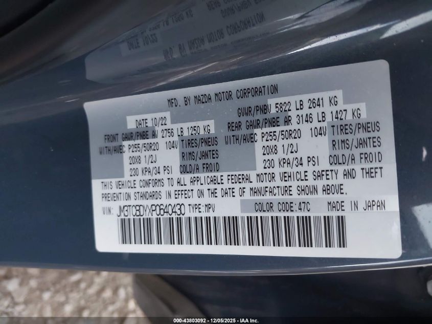 2023 MAZDA CX-9 2023 року Бензин, 2.5, Полный привод, vin - JM3TCBDYXP0640430 из США